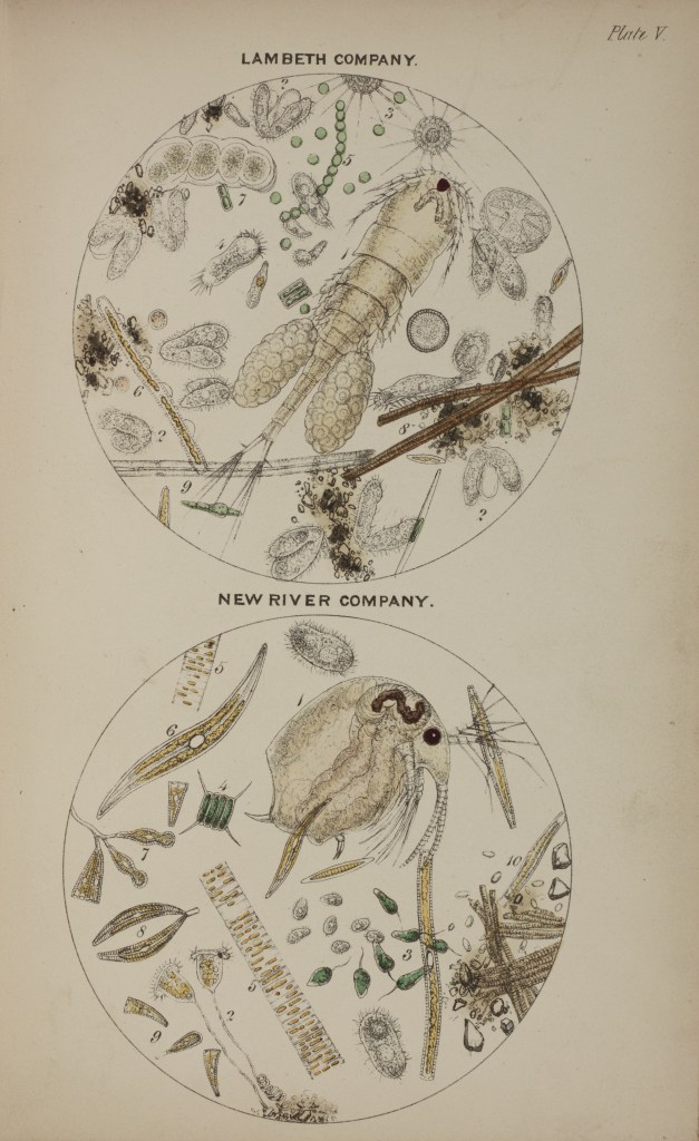 Two decades after Burdette made his comments in Parliament, Arthur Hassal produced a report A Microscopic Examination of the Water Supplies to the Inhabitants of London. He illustrated it with images of the water through a microscope. All of the companies had poor quality water. He concluded: